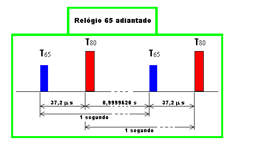 a. Se um medidor de intervalo de Tempo, contador, iniciou a medida com um pulso por segundo, 1PPS, do T65 e parou a medida com um pulso por segundo da saída do relógio T80, a leitura mostrada no contador será 37,2 m s.